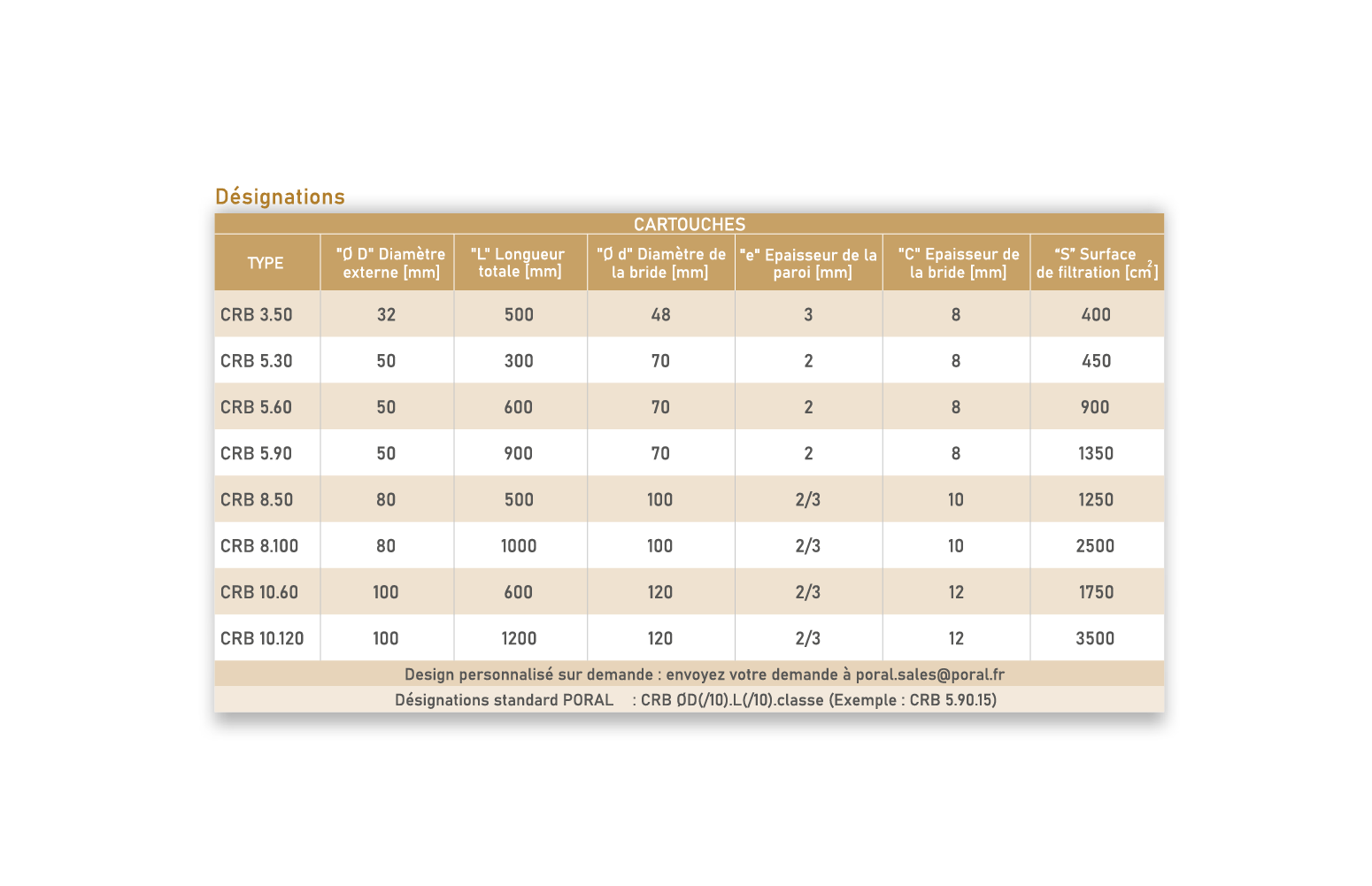 9 classes PORAL® disponibles – voir le tableau descriptif des classes PORAL® pour plus d’informations.