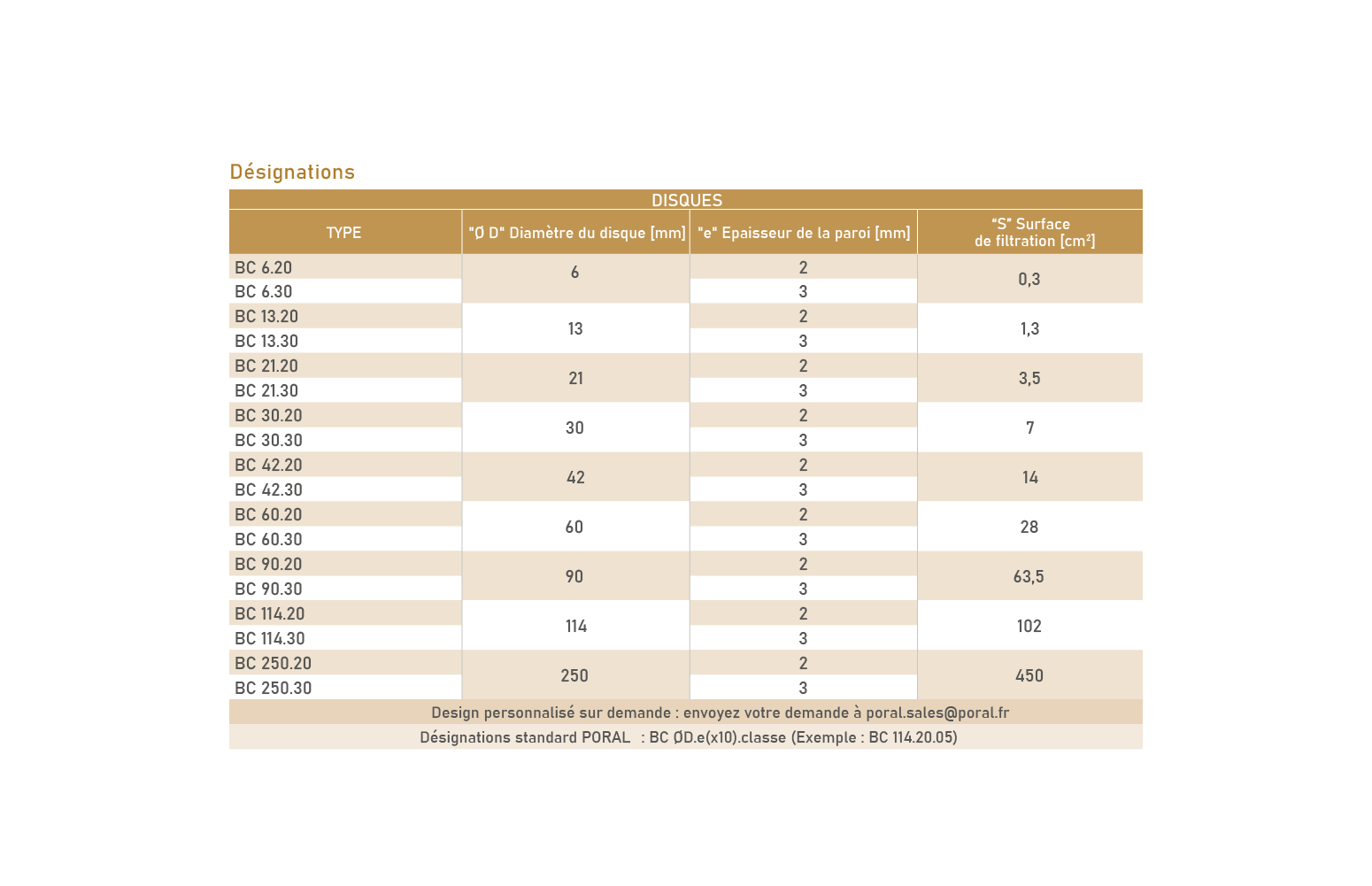 Pour les gaz, rétention à 98 % de particules solides de 0,7 μm (classe PORAL® 03) à 13 μm (classe PORAL® 60).