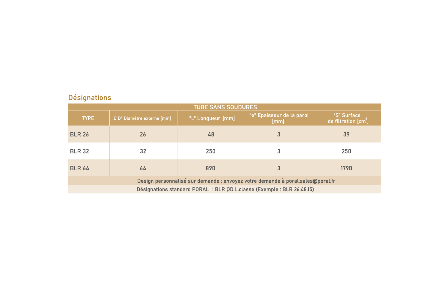9 classes PORAL® disponibles – voir le tableau descriptif des classes PORAL® pour plus d’informations.